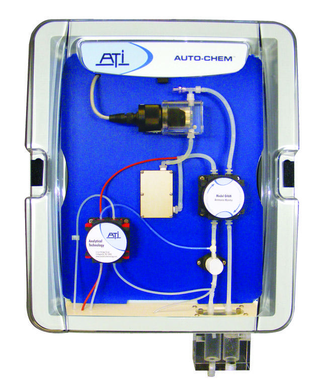 Continuous water quality monitoring of ammonia is becoming increasingly important for plant operations and process control. Unfortunately, on-line ammonia monitors are generally very expensive, complex, and labor intensive instruments. Most are automated versions of ammonia selective ion electrodes methods better suited to laboratory measurements. Others are automated colorimetric devices or instrumental methods that are difficult to justify on a cost basis.